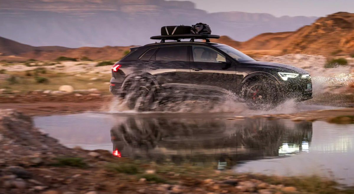 А токму тоа е моделот кој Audi сака да го претстави со новиот Q8 e-tron Edition Dakar, кое чини околу 120.000 евра во Германија. Базиран на Q8 e-Tron 55 со два мотори, тој ги испорачува истите 408 КС во режимот на засилување како и стандардниот модел, и забрзува од нула до 100 км/ч за 5,8 секунди со стандардните друмски гуми, или 5,9 секунди кога се опремени со General Grabber AT3 гума за сите терени што ги испорачува и Audi, давајќи им на возачите вкупно осум тркала.