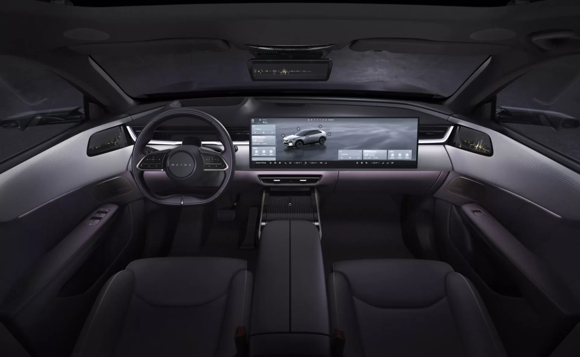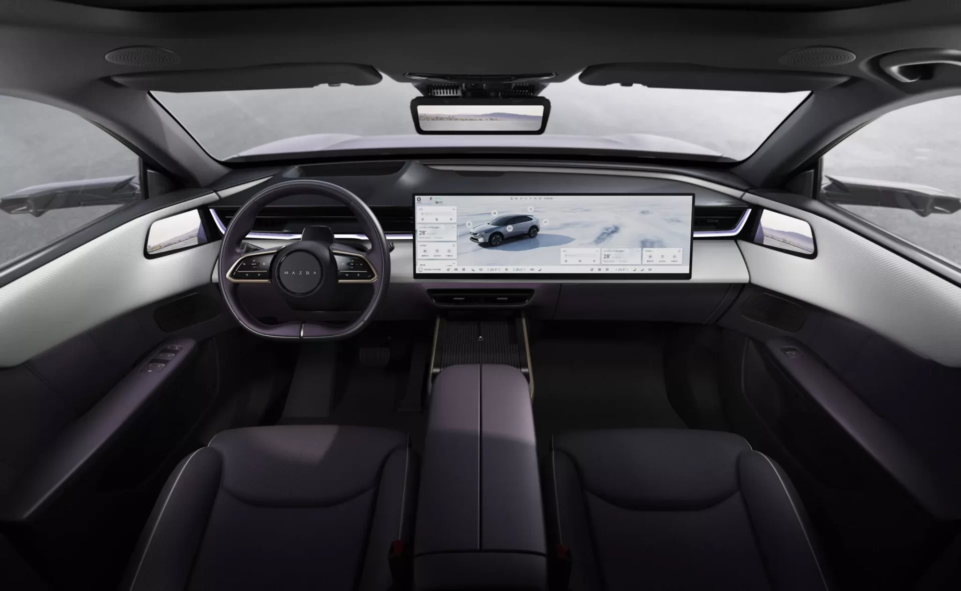 Еден од највпечатливите елементи во кабината е огромниот 26,5-инчен 5K дисплеј кој се протега низ целата ширина на контролната табла. Системот е надополнет со 100-инчен AR HUD проекционен дисплеј, додека физичките копчиња се целосно елиминирани – по примерот на Tesla.