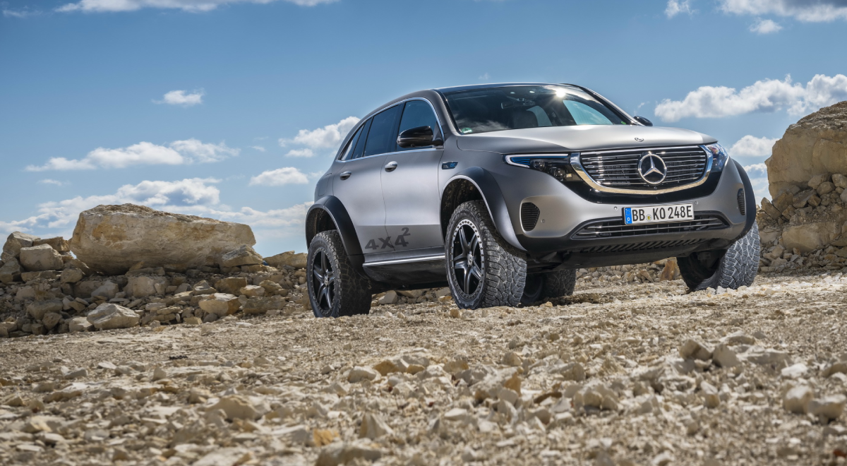 Mercedes има големо изкуство кога станува збор за тернците, а новиот EQC 4×4² е повисок за 20 милиметри во однос на стандардниот продукциски модел благодарение на тимот кој стои и зад концептот Е 400 All-Terrain 4×4².