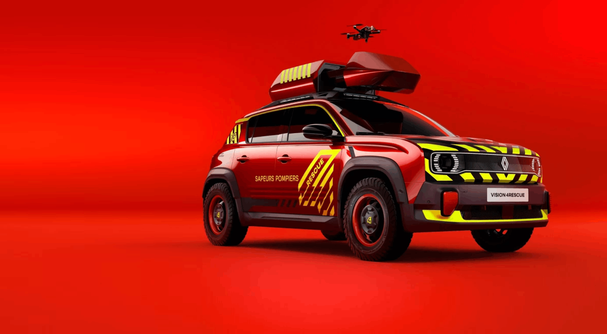 Вообичаено, возилата за итни случаи не привлекуваат многу внимание, но Renault успеа да го промени тој наратив со новиот концепт Vision 4Rescue – футуристичко противпожарно и спасувачко возило базирано на електричниот Renault 4 E-Tech. Концептот беше претставен како мобилен команден центар, подготвен за интервенции во тешки услови и кризни ситуации.