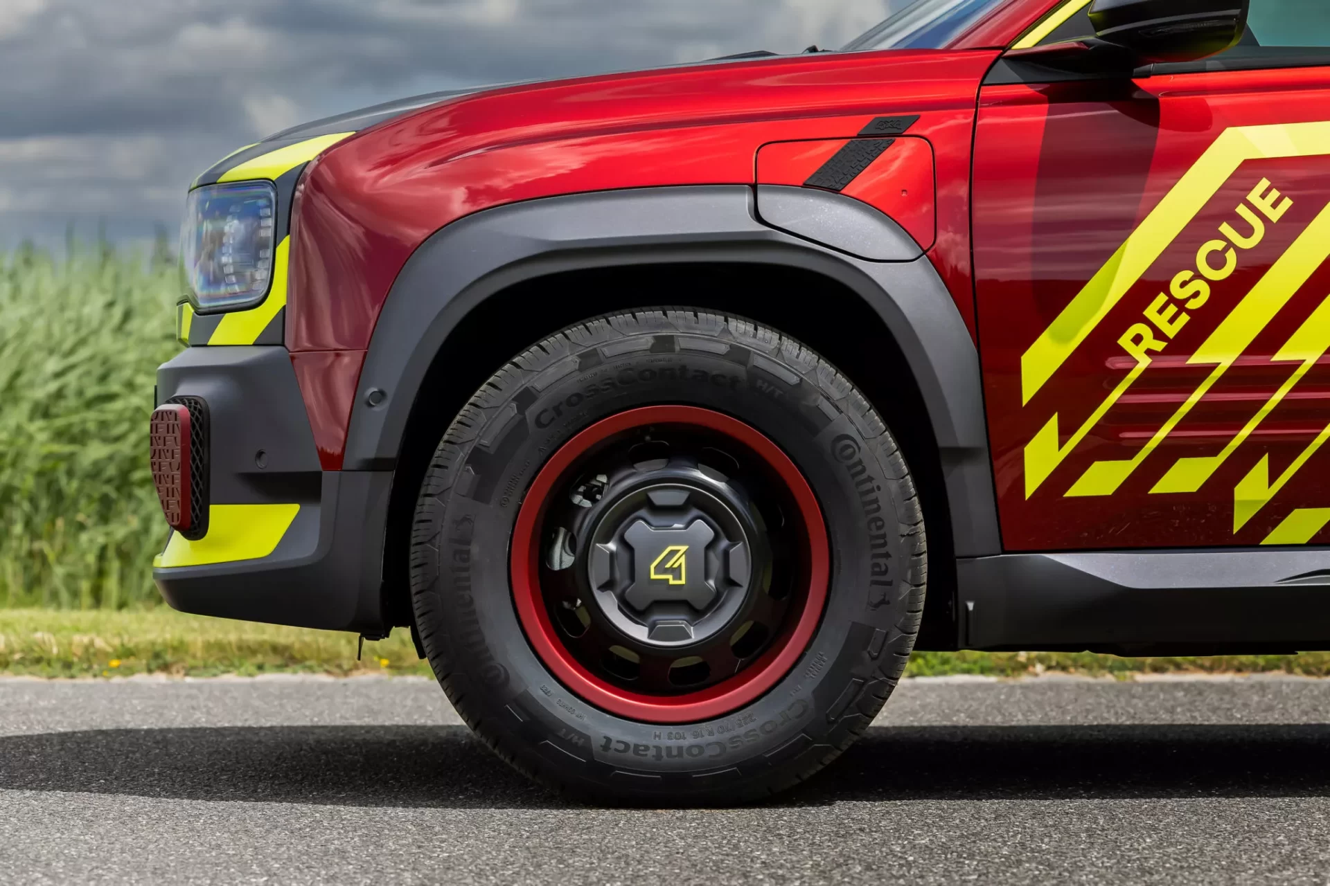 Концептот е целосно обложен во огнено црвена боја со комбинација од мат и гланц графики инспирирани од службите за итни случаи. Дополнителните заштитни крила, подигната каросерија за 15 mm, специјализирани браници и светла за итни случаи го зајакнуваат теренскиот и функционален карактер на возилото. Браниците вклучуваат и 3D-печатени елементи со својства за апсорпција на удари.