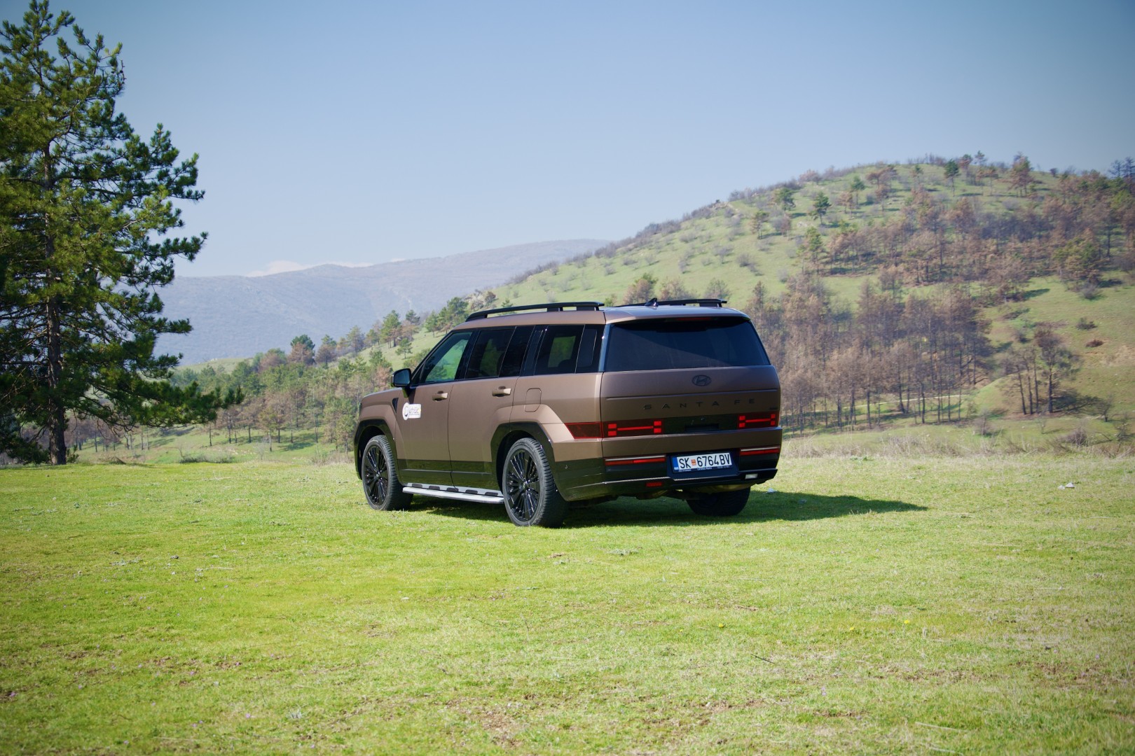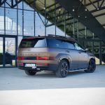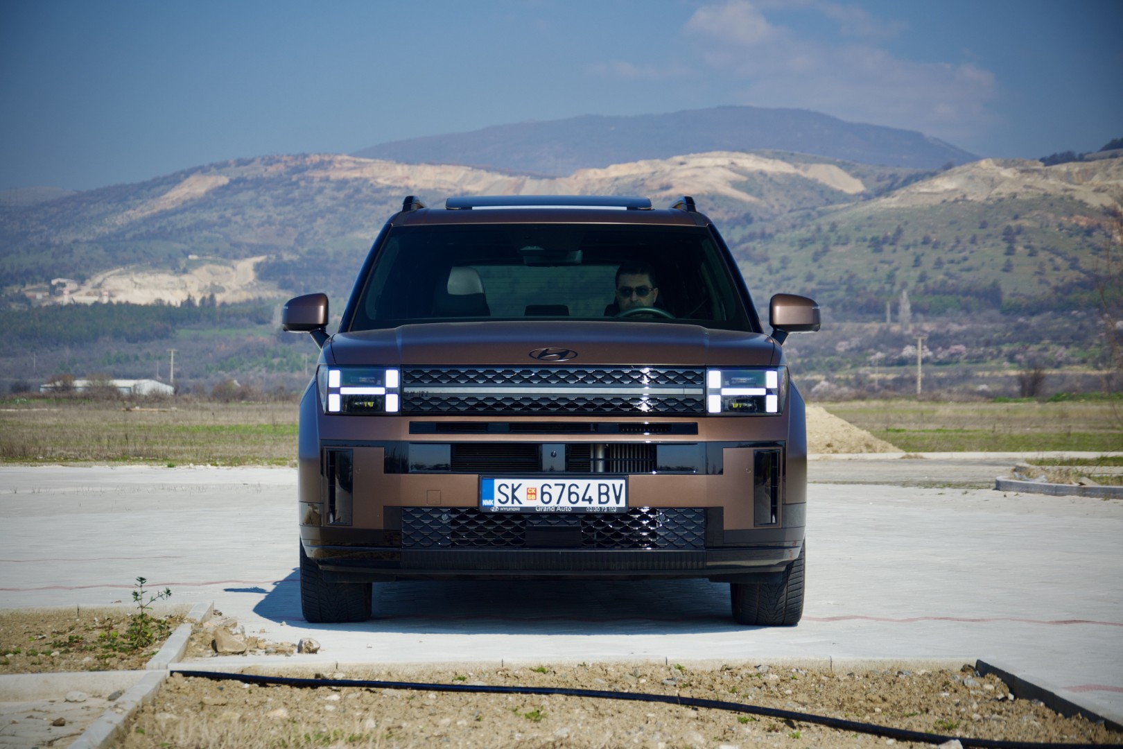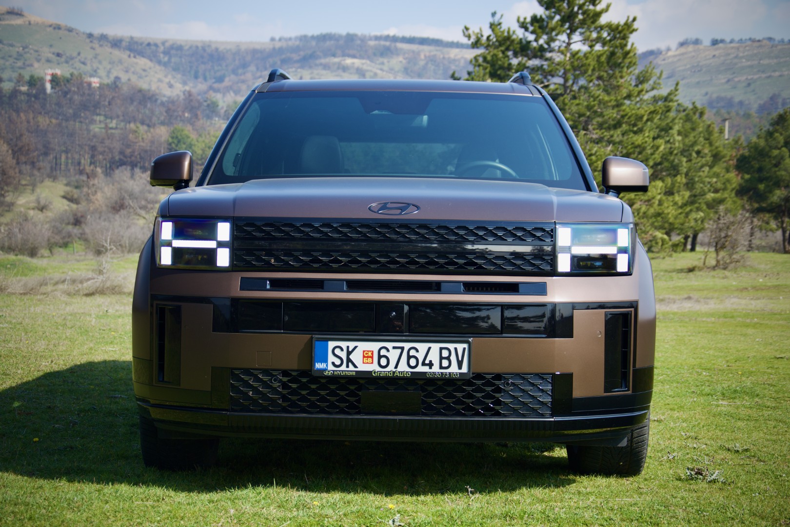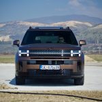 Доволно е само да застанете пред новиот Santa Fe и да го оставите погледот да се движи полека. Она нешто што прво ќе ве падне во очи е правоаголната појава, намерна, самоуверена и речиси провокативна изјава на дизајн. Новиот Santa Fe ги напушта заоблените, „friendly“ линии на претходниците и зборува директно преку рамни површини, нагласени рабови, висок и вертикален став кој повеќе асоцира на сериозен теренец отколку на фамилијарен СУВ.