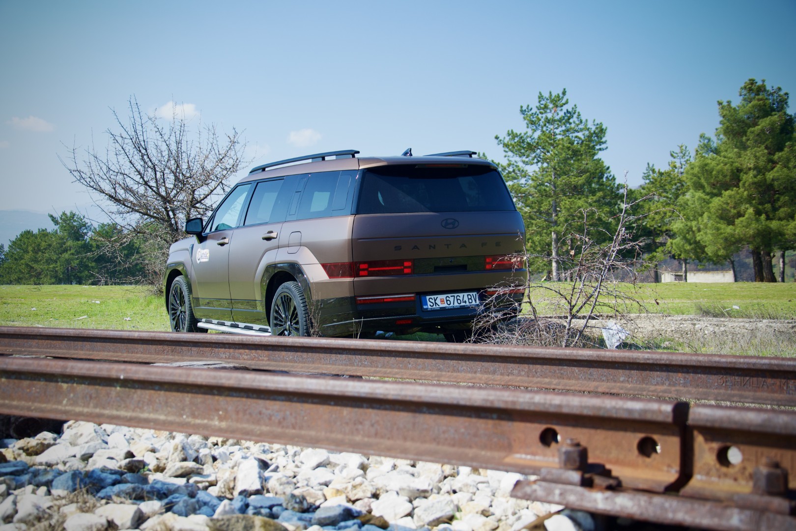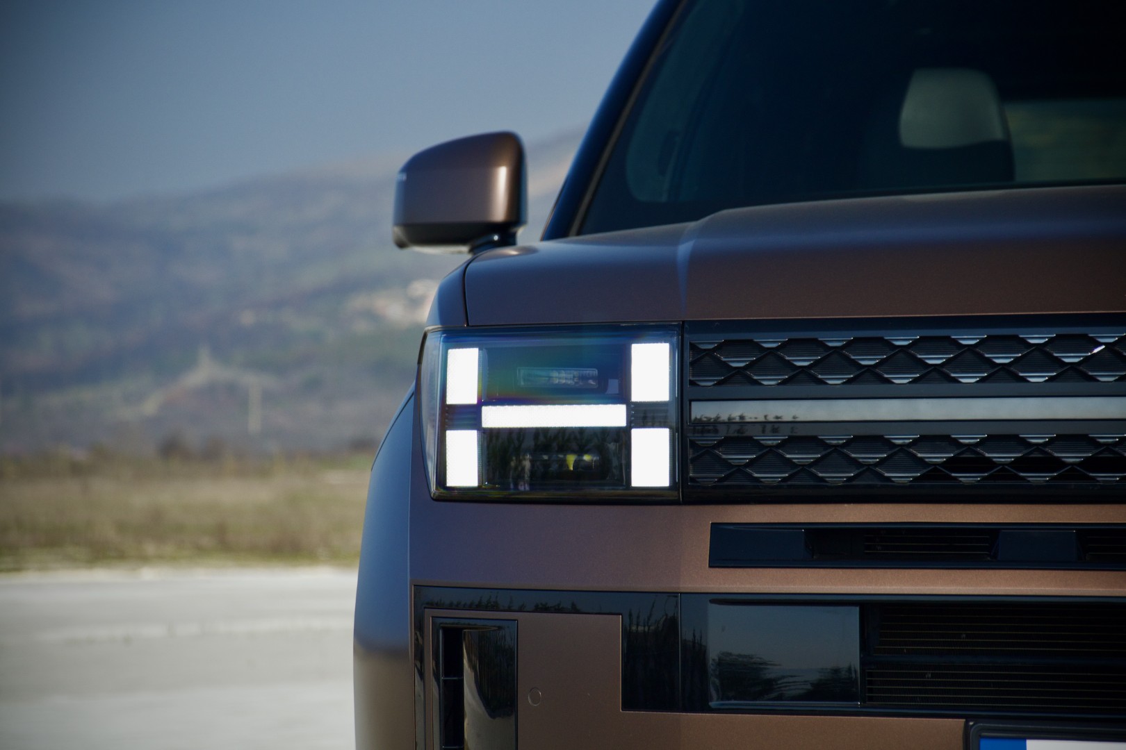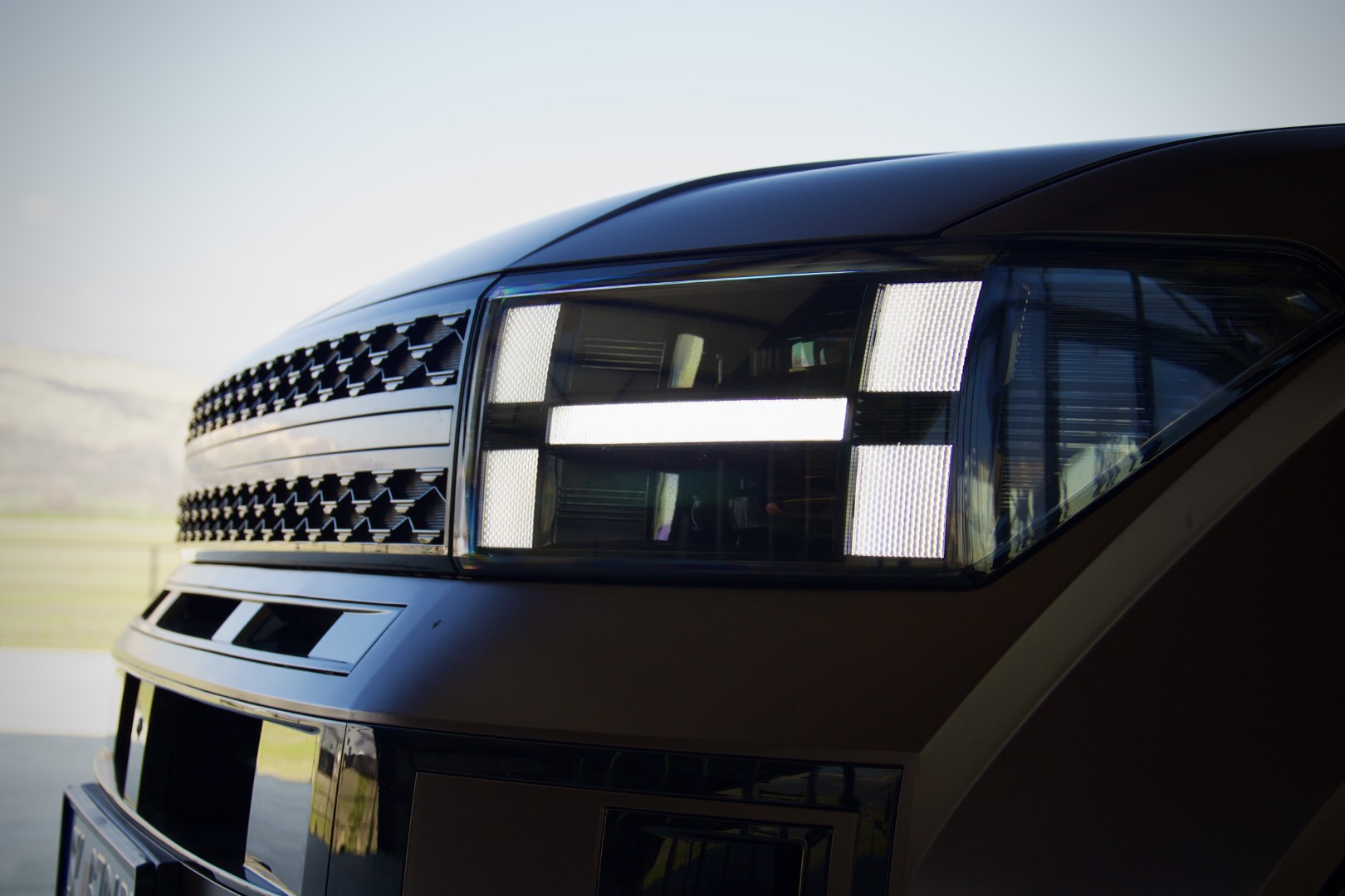 Доволно е само да застанете пред новиот Santa Fe и да го оставите погледот да се движи полека. Она нешто што прво ќе ве падне во очи е правоаголната појава, намерна, самоуверена и речиси провокативна изјава на дизајн. Новиот Santa Fe ги напушта заоблените, „friendly“ линии на претходниците и зборува директно преку рамни површини, нагласени рабови, висок и вертикален став кој повеќе асоцира на сериозен теренец отколку на фамилијарен СУВ.