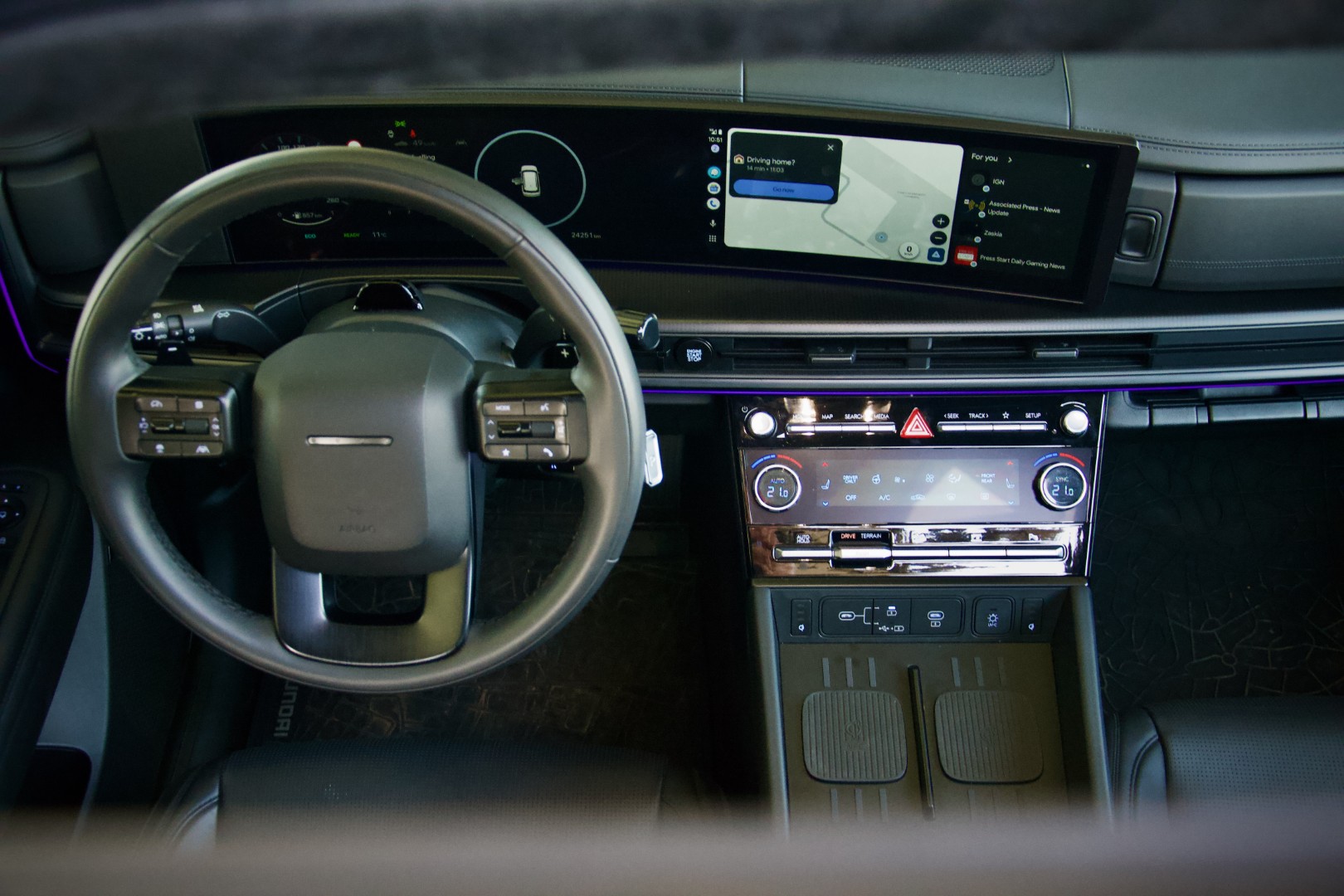 Централната конзола е широка и постевена доста високо со намера, затоа што менувачот е преселен на управувачкиот столб во облик на краток лост со паркинг копче на врвот го ослободува целиот простор меѓу предните седишта за складирање. Во таа зона е сместен безжичниот полнеач за два уреди истовремено, USB приклучоци, широк раконаслон со остава до чиј простор лесно може да пристапат и патниците од задните седишта бидејќи конзолата се отвора како фиока од нивната страна. Како што ни навестуваат надворешните габарити, во внатрешноста просторот е главната тема.
