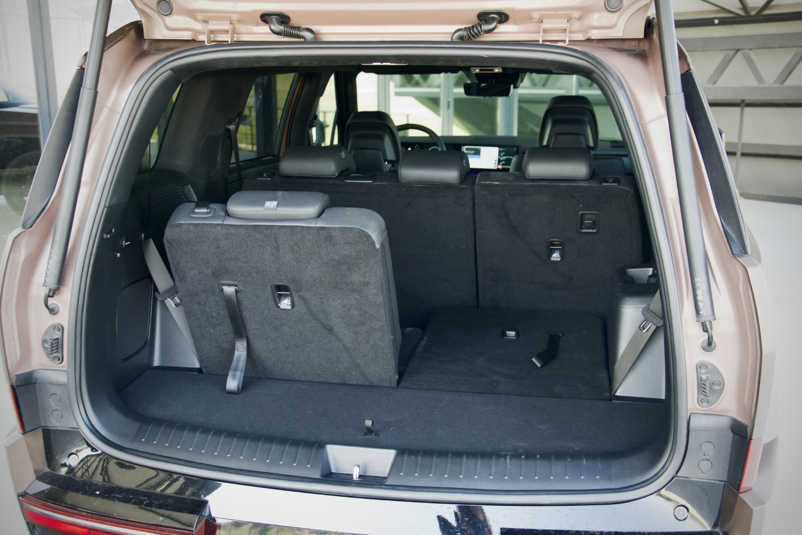Предните седишта се на врвот по комфор, но тоа не значи дека се заборавени и остантите патници. Напротив, меѓоскиното растојание од 2.815 мм дозволува лимузнски комодитет и за патниците во вториот седечки ред, без притоа да бидат лишени од посебните отври за климатизација или приклучоци за понење на мобилните телефони. Што е уште поинтересно, тестираниот примерок поседува и трет ред на седишта на кои без проблем може да се сместат и возрасни лица без притоа да не губат ниту еден дел од удобностите во кои уживаат и патниците во редот пред нив.