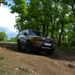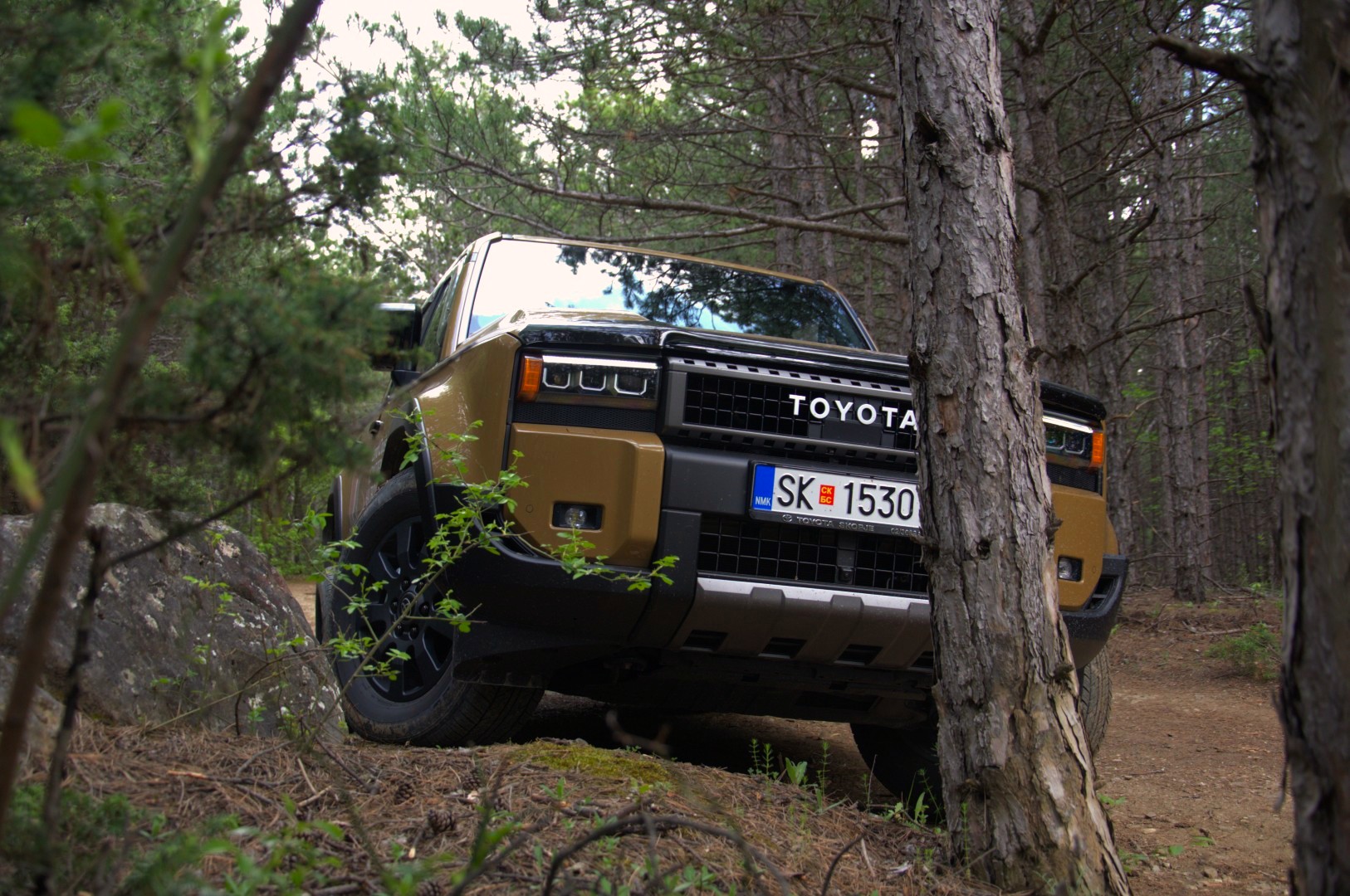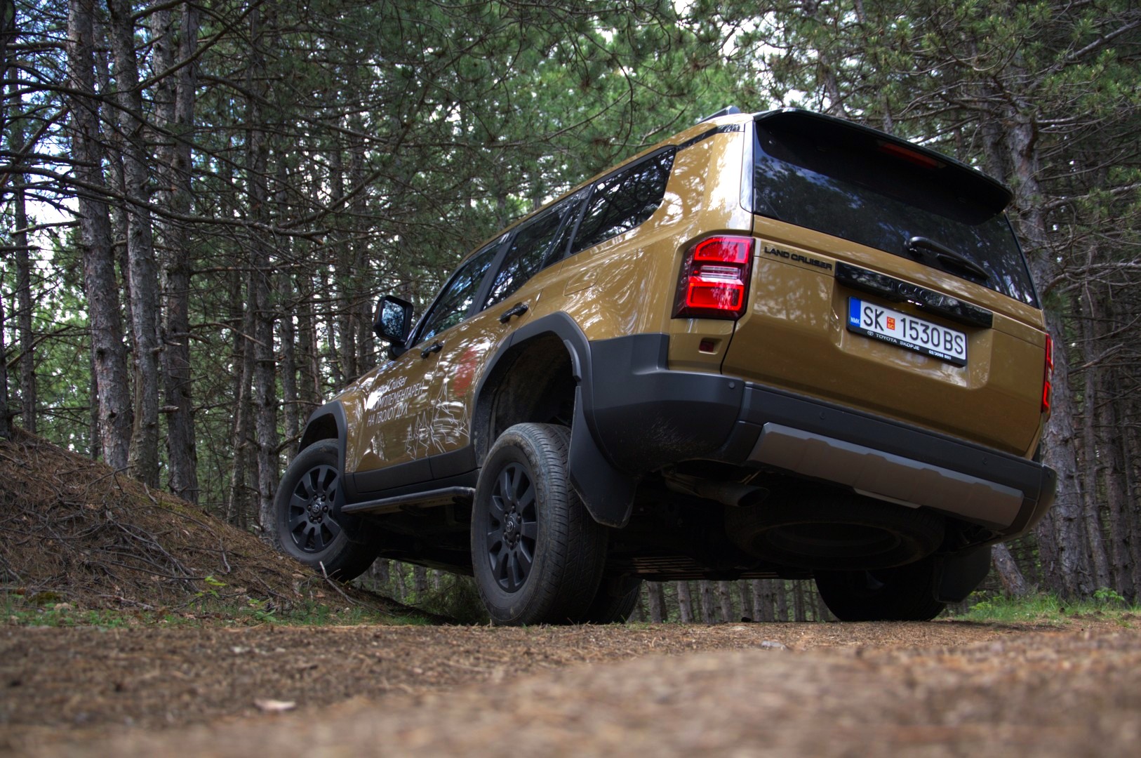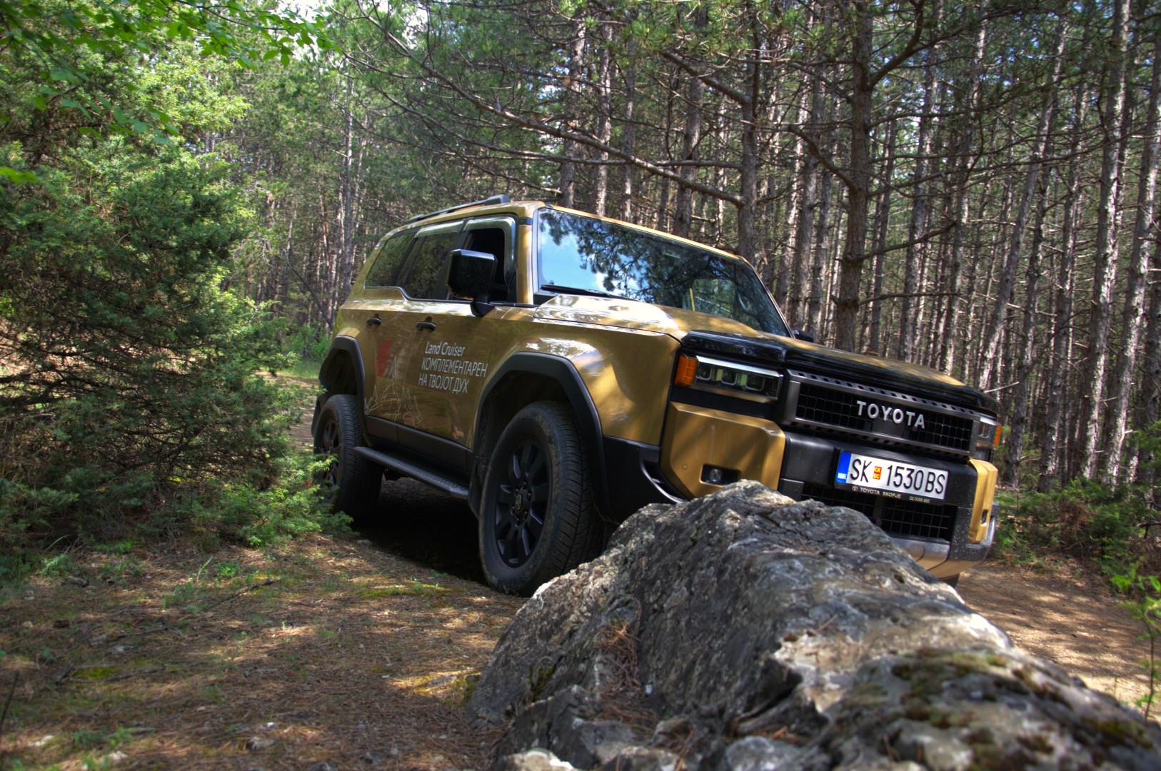 Нашата средба со новиот Land Cruiser вклучуваше тестирање на асфалт и надвор од патот, токму таму каде што неговата суштина најмногу доаѓа до израз. Иако неговата надворешност визуелно остава силен впечаток, вистинската трансформација се случува таму каде што не се гледа, а тоа е под каросеријата. Новата генерација ја користи платформата GA-F, развиена за поголемиот брат од „серијата 300“, која останува верна на традиционалната конструкција.