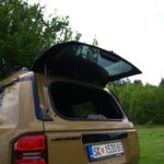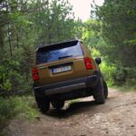 Задниот дел е минималистички, со едноставни светлосни групи и голем напис на компаниското име по средината на багажникот, што е уште еден омаж на минатото. Под браникот, заштитата на подвозјето потсетува дека не е само за градска употреба, туку дека станува збор за теренец создаден да издржи и тоа не само визуелно, туку во реални услови.